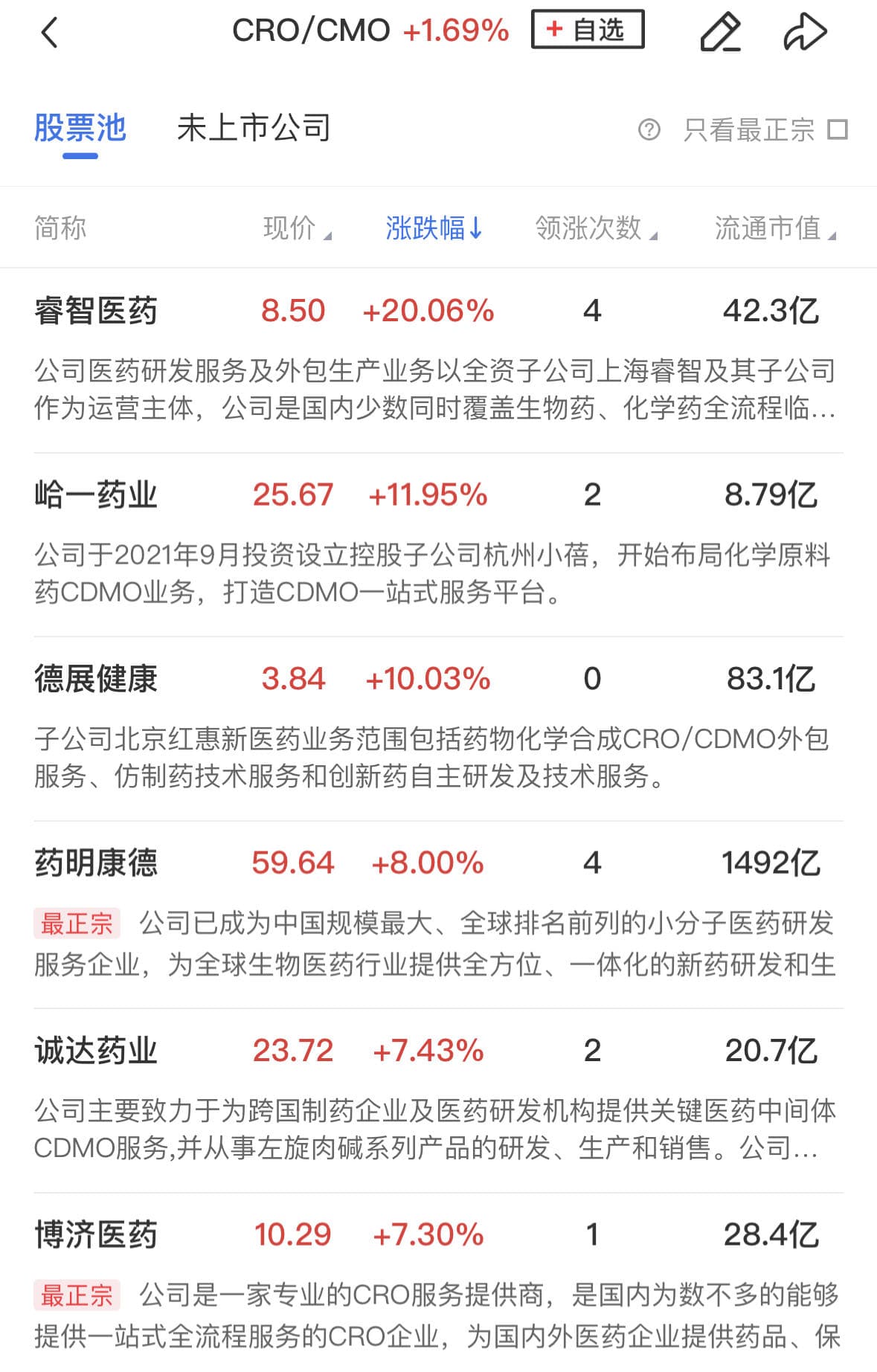 CRO概念概念股走强,睿智医药、亚太药业、河化股份、德展健康等个股涨停,药明康德涨8%,诚达药业、博济医药、金凯生科、成都先导涨幅居前。消息面上,美国当地时间12月7日,美国会参众两院军事委员会公布了2025财年国防授权法案(NDAA)最终协议文本,该版本兼顾了众议院以及参议院两方的提案。NDAA最新版本显示,生物安全法案未被列入其中。