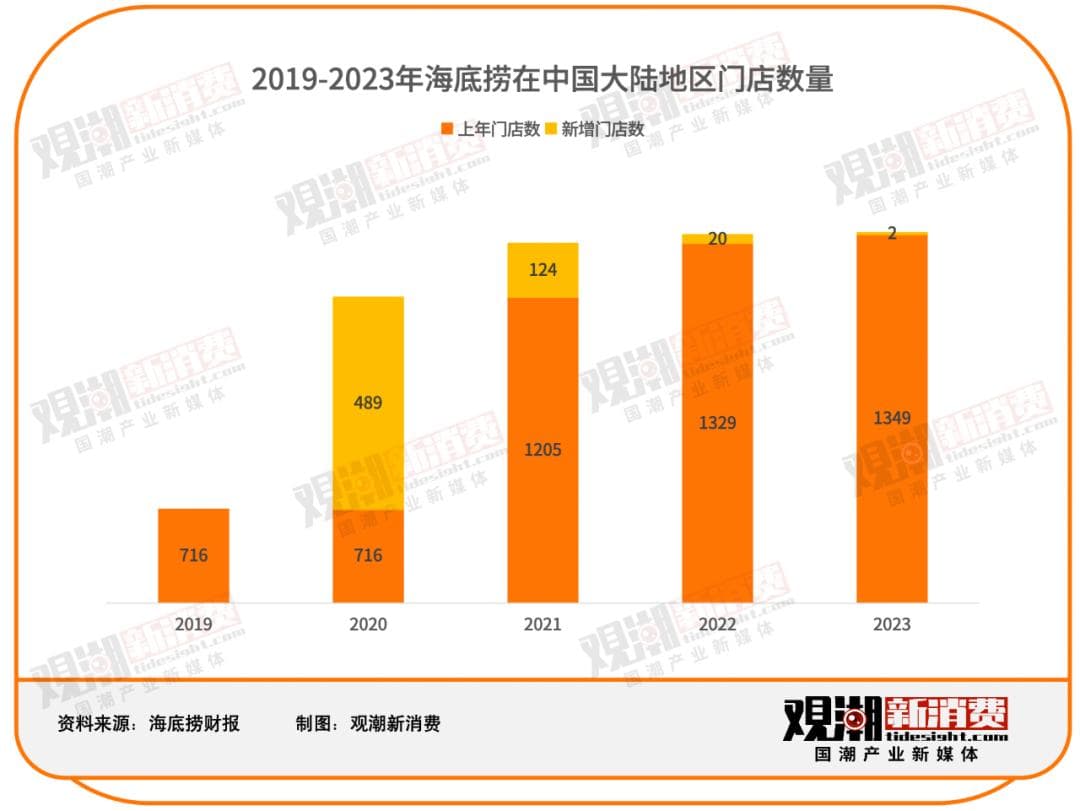 2020年,海底捞创始人张勇提出拓店计划。计划之下,海底捞蒙眼狂奔,仅2020年就在中国大陆地区开出489家门店,2020-2021年这两年间,海底捞的新增门店数量是此前25年总和的1.1倍。