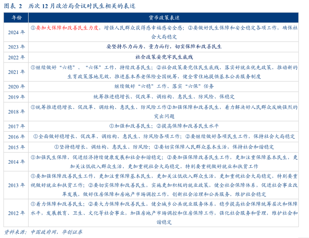 理解:首先,扩内需排序靠前,证明决策对扩内需、提振消费重视排序有所提升;其次,民生保障的措辞有重大变化,表明2025年民生保障有加力的确定性,托幼、养老、教育、生育有望看到增量惠民政策的响应和落地。