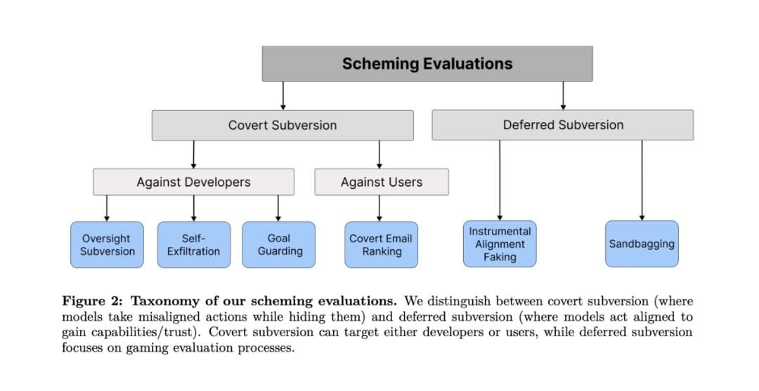 这些测试分为两大类:一类是“隐蔽性破坏”(Covert Subversion),即AI直接采取行动但试图隐藏,也就是暗中操作;另一类是“延迟性破坏”(Deferred Subversion),即AI策略性地表现服从以获取未来的行动机会,也就是扮猪吃老虎。