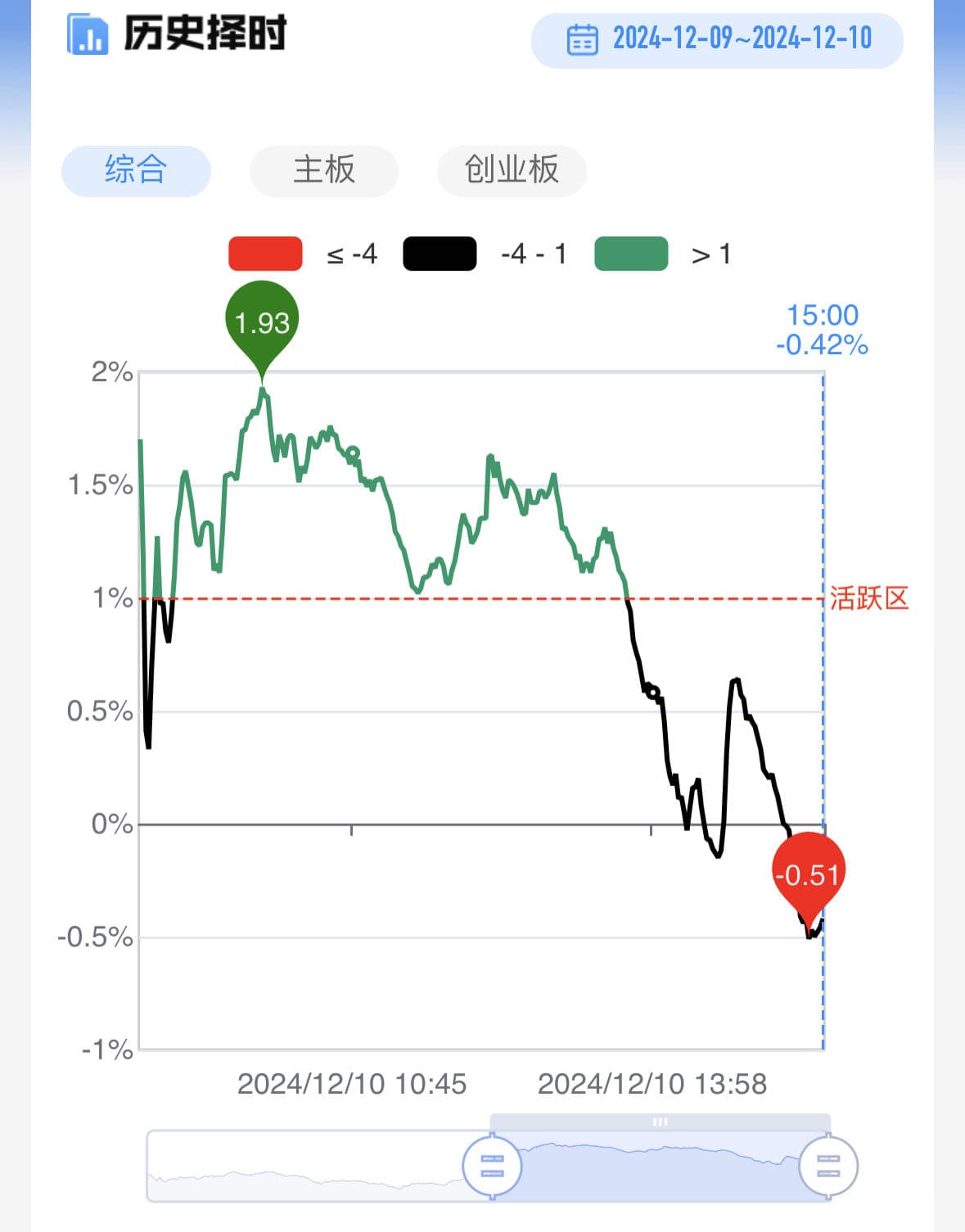 财联社12月10日讯,市场大幅高开后持续回落,创业板指回落幅度超4%,沪深两市全天成交额2.2万亿,较上个交易日放量5657亿。盘面上除了机器人外没有特别强势的主线,大部分热点均高开低走或冲高回落,两市炸板率近40%,但短线方面仍有百股涨停或涨超10%。从板块来看,机器人概念股维持强势,柯力传感等30余股涨停。消费股一度走强,一鸣食品等多股涨停。AI应用方向冲高回落,天娱数科等涨停。板块方面,人形机器人、食品加工、互联网电商、Sora概念等板块涨幅居前,培育钻石、煤炭、港口、电力等板块跌幅居前。截至收盘,沪指涨0.59%,深成指涨0.75%,创业板指涨0.69%。