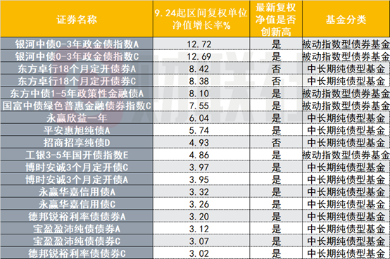 债基发行受追捧,短短10天已成立343亿份 此轮行情以来,这些存量债基净值创新高