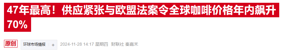 纽约咖啡期货价格创新高 全球供应紧缩掀起市场风暴