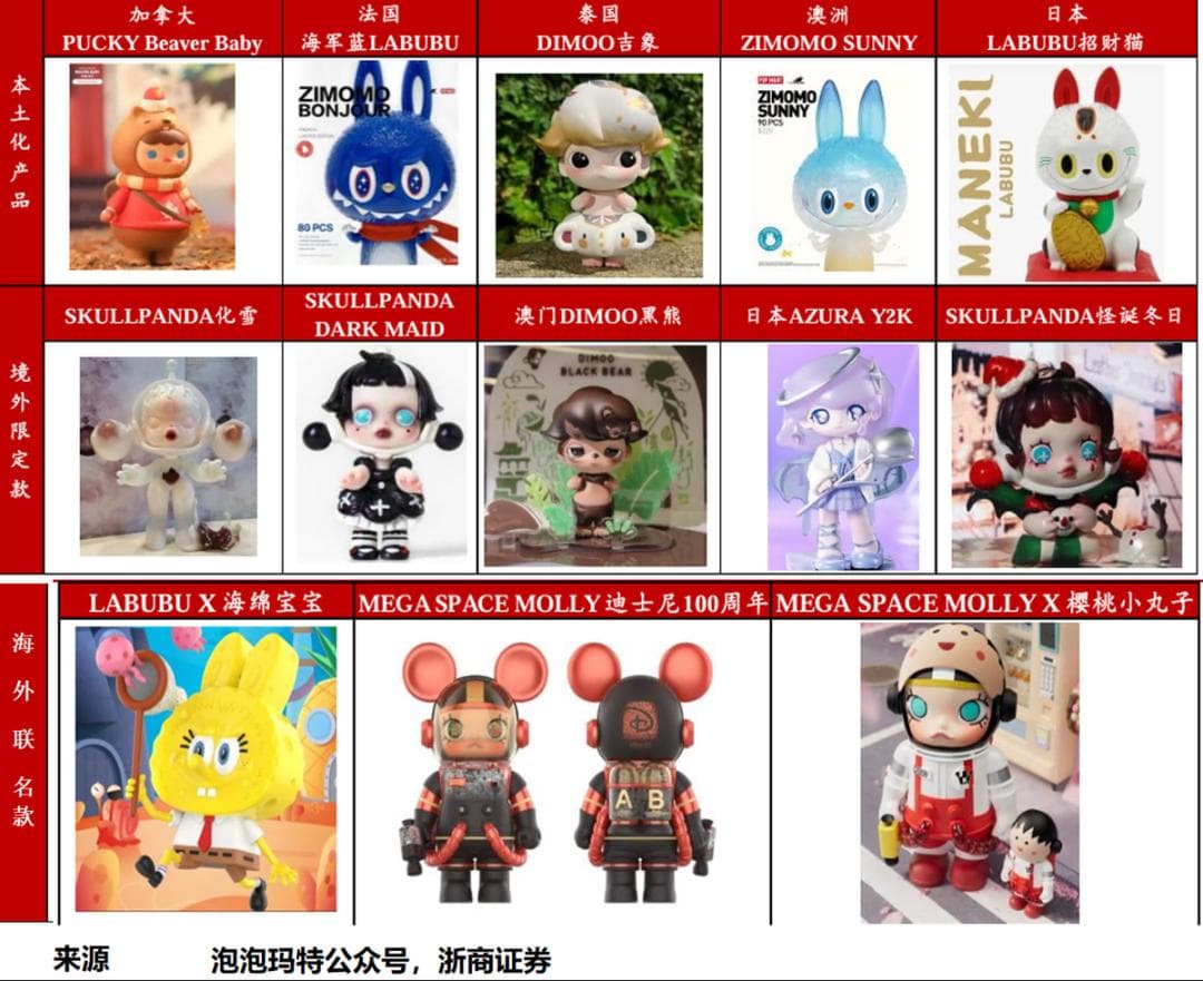尤其是当我们从结果上来看,除了一些本身有故事线的外部IP,泡泡玛特大多海外市场的畅销款和中国市场差距并不大——Molly、Skull Panda、Dimoo和Hirono(小野)。