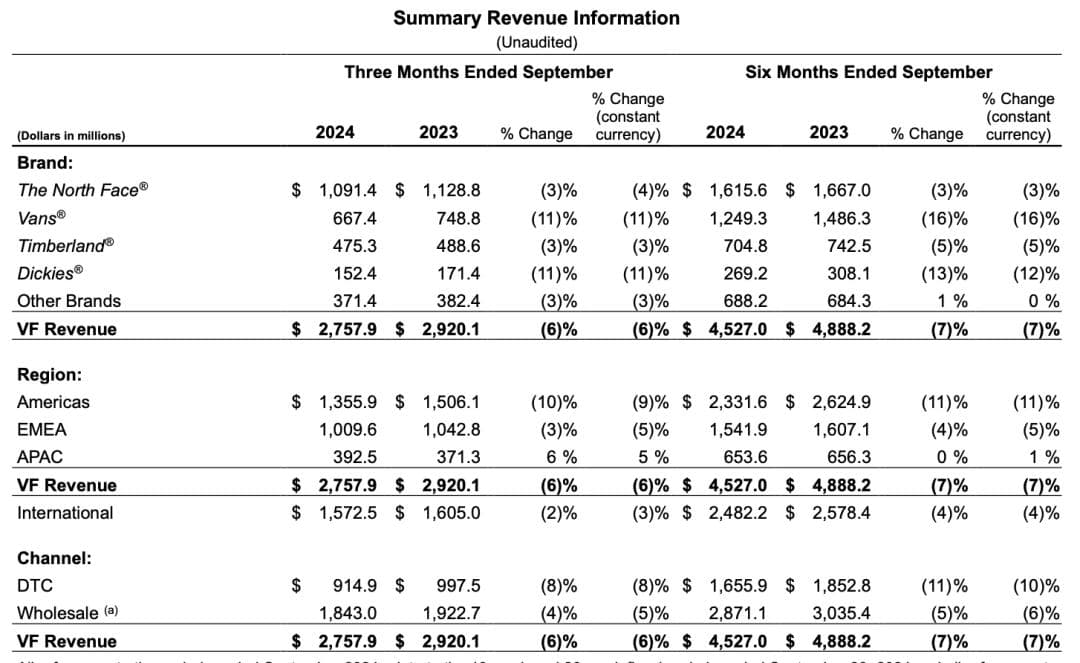 北面母公司VF发布的2025第二季度财报 来源:VF