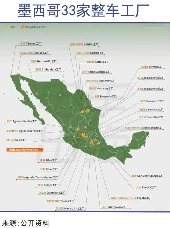主机厂介入的程度要轻很多。目前中国车企真正在墨西哥实地生产的仅江淮和北汽两家,江淮的车型为轿车、轻卡,北汽(福田)主攻商用车,两家企业基本为内销。