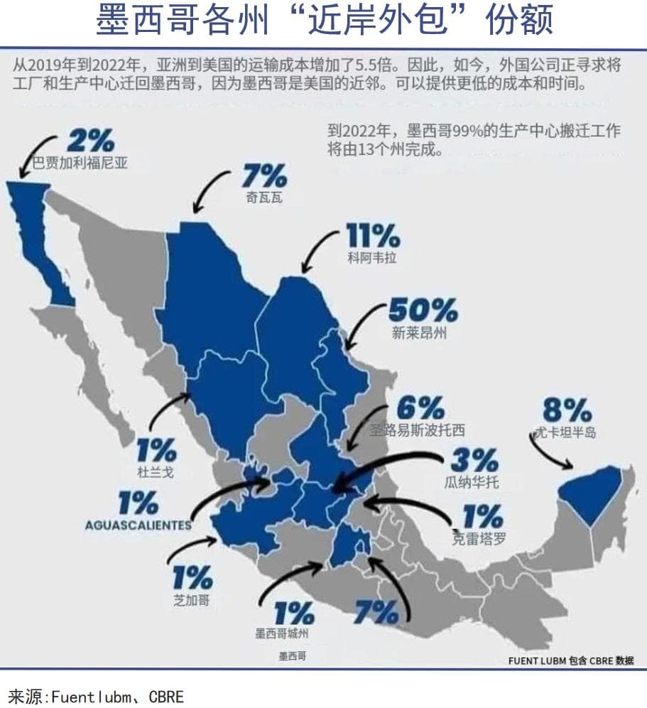 作为和美国紧密相连的墨西哥,自然成为最大赢家。“中国的‘失’就是墨西哥的‘得’”。《财富》毫不言讳墨西哥作为“近岸外包”的重要作用。