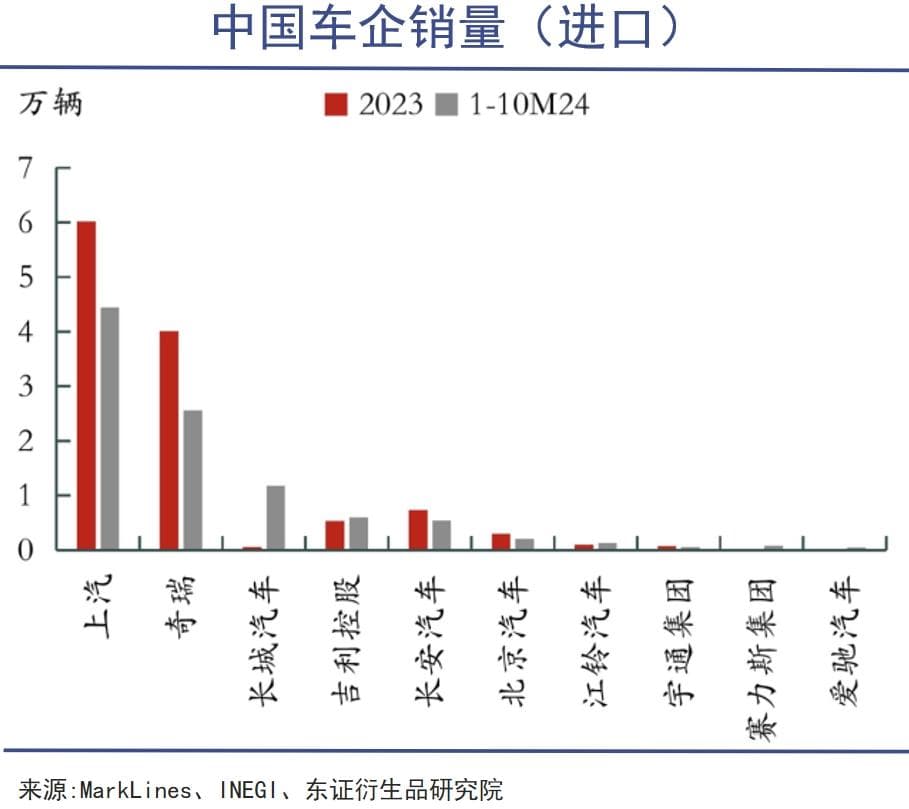 今年前三季度,墨西哥是中国汽车出口第二大目的地,仅次于俄罗斯。2023年,我国向墨西哥出口汽车41.5万辆,而中国在墨西哥的销量只有13.2万辆,其中差额28.3万辆的部分,就是借道墨西哥再次出口至北美等其他国家。