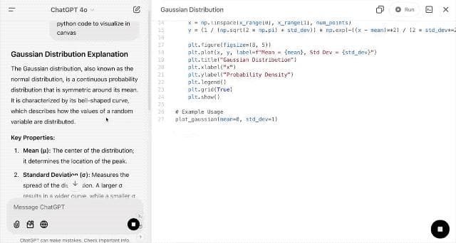 ChatGPT Canvas 的第二项重要更新则是支持直接运行 Python 代码。