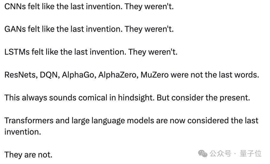 LSTM、ResNet、DQN、AlphaGo、AlphaZero、MuZero都并非终结。
