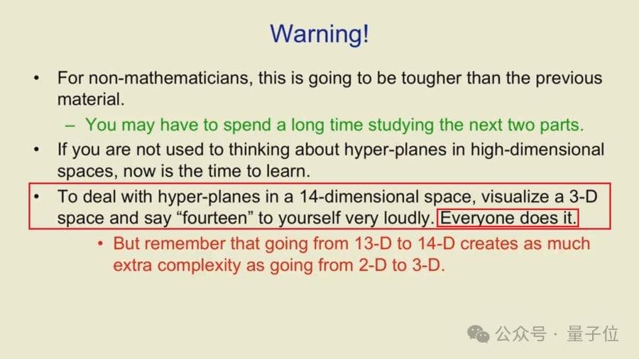 但请记住,从13维到14维的转变,其增加的复杂性与从2维到3维的转变一样大。
