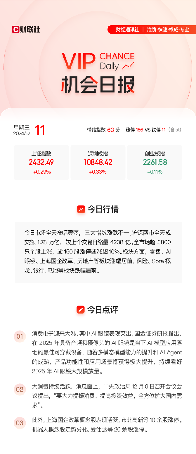 【VIP机会日报】消费电子迎来大涨 栏目追踪AI眼镜行业动态 提及2家焦点公司涨超10%