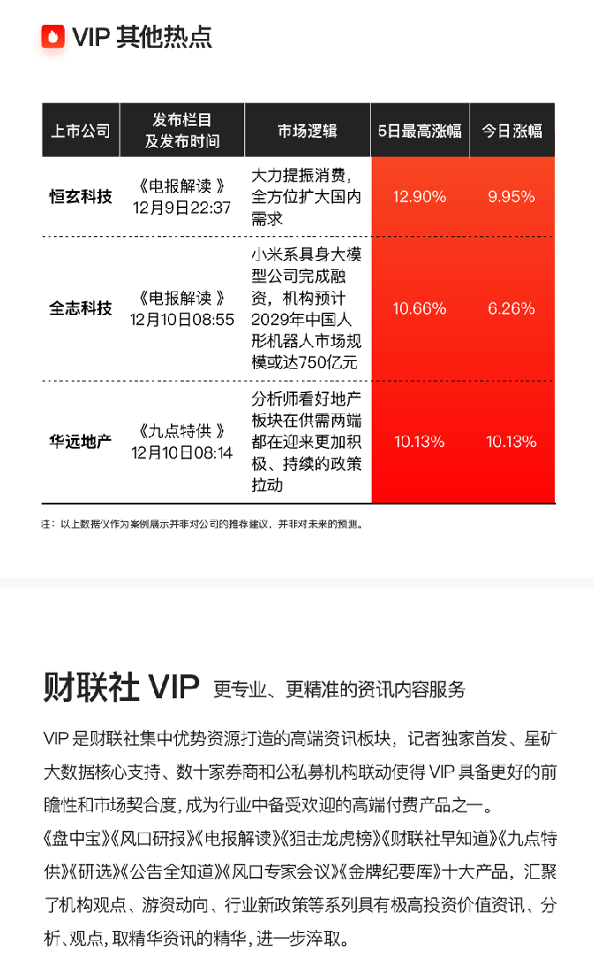 注:财联社VIP为内容资讯产品,并非投资建议。以下内容仅为资讯价值展示非对相关公司的推荐建议,非未来走势预测。投资有风险,入市需谨慎。