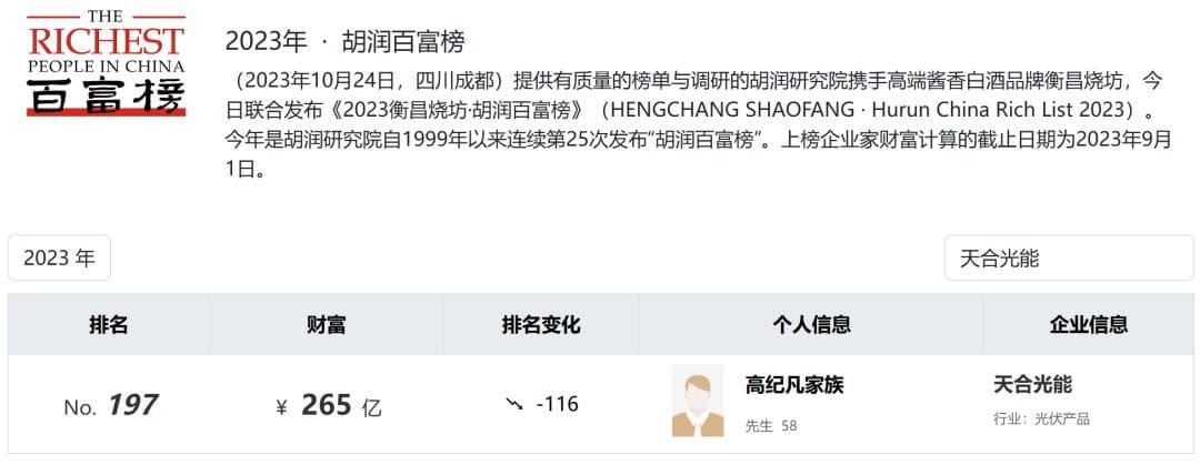 天合光能创办人为曾经的科创板首富高纪凡,而天合富家的董事长为其女儿高海纯。