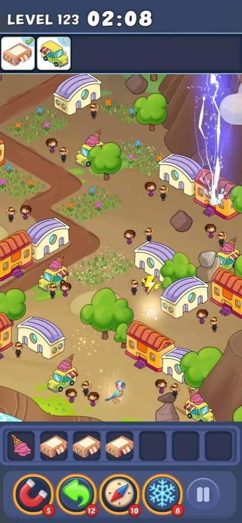 《Triple Match City》在3D堆叠消除的基础上,融入了寻物解谜的玩法:玩家需要在一片可以自由缩放的地图上,在限时寻找出其中相同的目标物品并进行消除。随着关卡难度的提升,游戏还会有移动的云朵和火车等障碍物,为玩家的点击寻物增加难度。