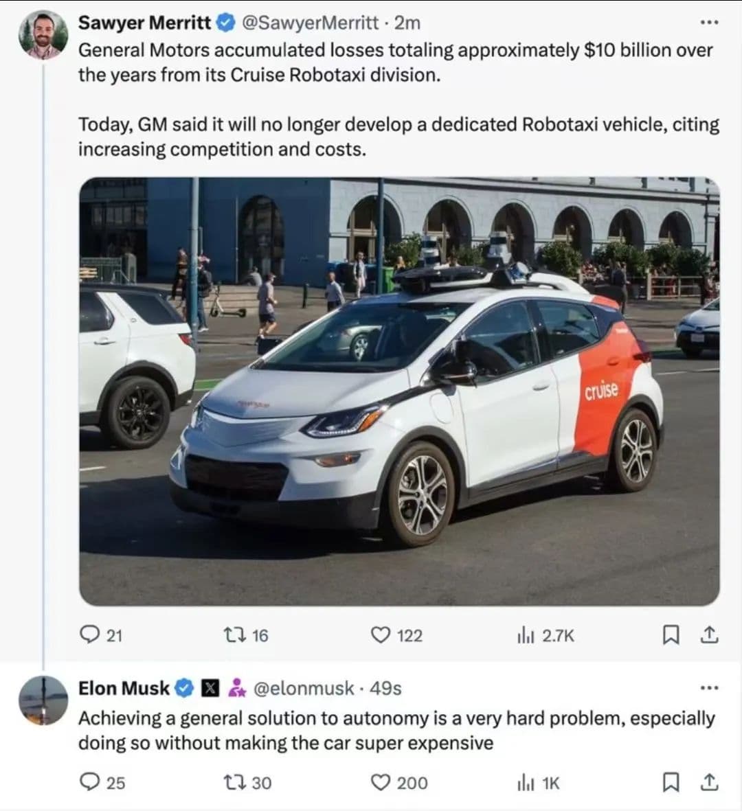 该公司高管在电话会议上表态,特斯拉的端到端自动驾驶是正确的方向,“这才是行业转型的重点,Cruise已经意识到这个问题,且开始朝着这个方向前进,我们将转向基础模型和端到端方向。”