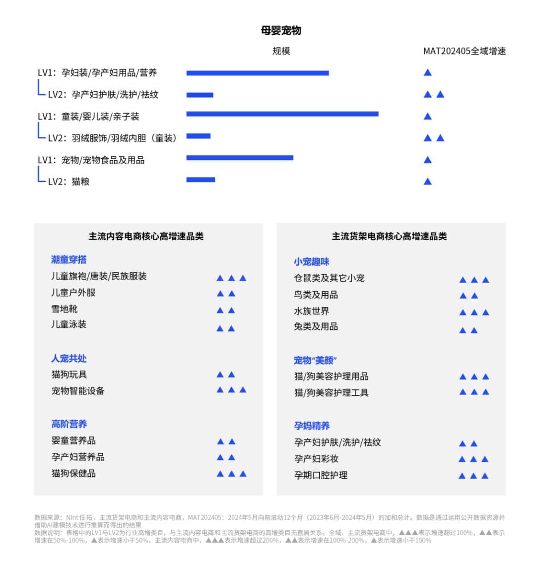 母婴宠物行业:亲子穿搭与孕妈护肤产品广受欢迎,宠物智能设备与美容用品持续吸引关注,水族小宠成为年轻人的新宠;