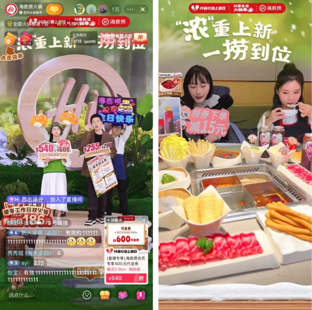 “浓浓浓菌汤”新品上市,海底捞开展了以 “浓重上新,一捞到位”为主题的直播,在抖音并分别进行了自播和达人直播。11月14日-11月17日活动期间,海底捞在抖音大场直播累计支付破亿。