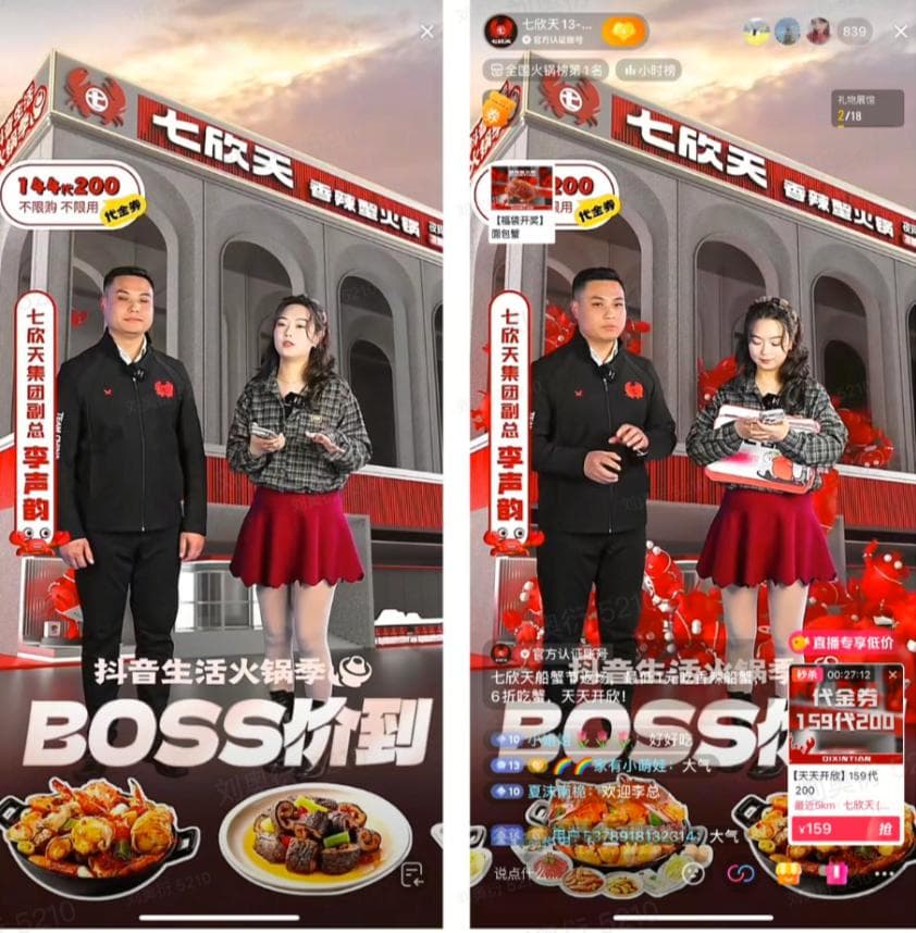 在塑造了品质和价值感后,七欣天也跟上了抖音冬日火锅活动,并且重点运营了「BOSS价到」环节,七欣天集团副总李声韵首次官播露面,给到了低至6折独家品福利,并采取高质量留言阅读与用户形成互动,分钟交易近4万!