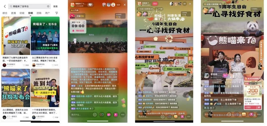 熊喵来了是东北区域首个在抖音生活服务执行品牌升级发布会的餐饮品牌,继发布会后联动9周年生日会大场直播。活动期间,主推200元代金券和300元代金券,在本次大场中,其销售占比分别为46%和27%。