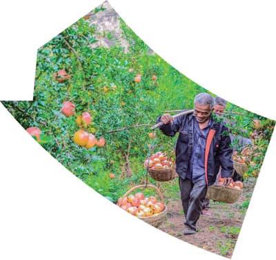 作为南水北调中线工程渠首所在地和核心水源区,河南淅川县立足生态发展。图为马蹬镇苏庄村软籽石榴基地丰收,农户满载而归。