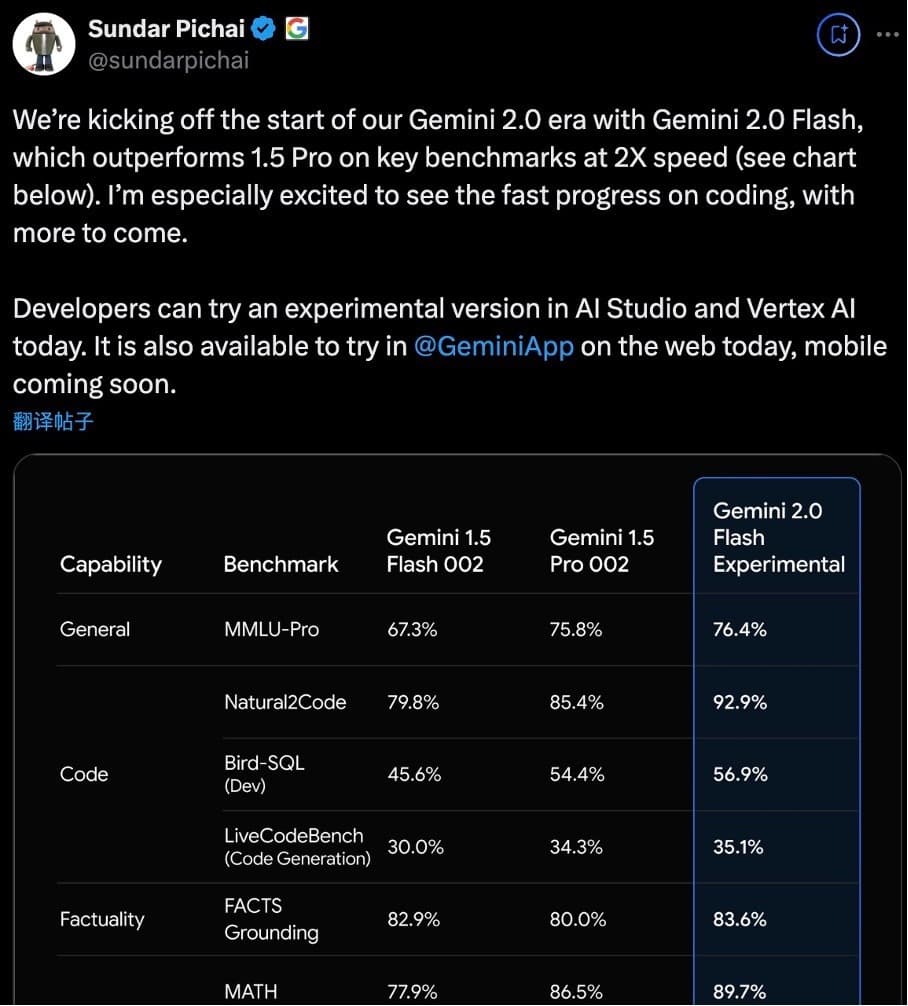 然而,就在这场温馨的"相亲发布会"进行前的一个小时,Google却扔下了重磅炸弹。Gemini 2.0 Flash的发布,就像一位不速之客闯入了别人的派对,而且还带来了让所有人侧目的礼物。