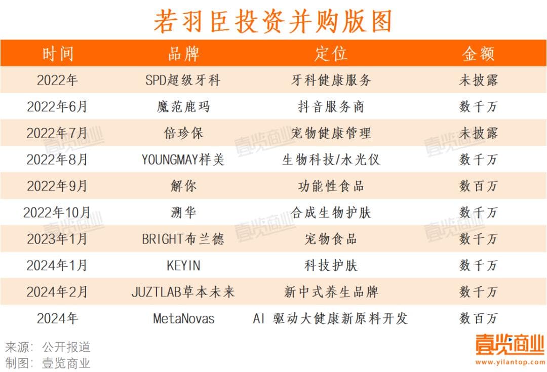 若羽臣是电商代运营公司中的投资爱好者。2022年起,若羽臣前后投资了数十个品牌,覆盖大健康、食品、美妆等多个行业。