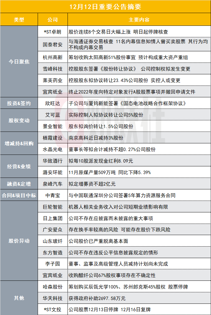 突发!八连板信创概念股明起停牌核查 |盘后公告集锦