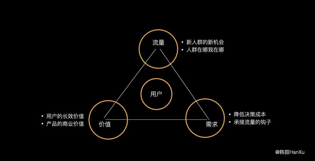 参考我们的【流量-需求-价值】三角形,这里只说流量和需求。