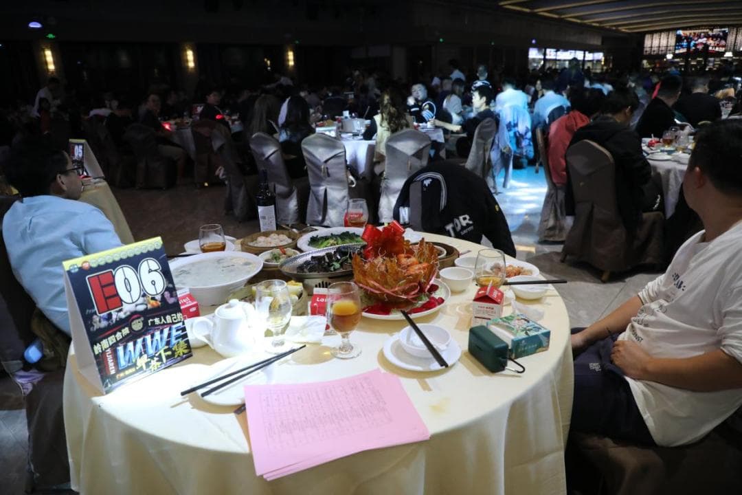 12月7日晚,广州番禺一家茶楼内,广式烧鹅、鲍汁扣鹅掌、豉汁排骨......山上跑的、海里游的,各种冒着热气的珍馐被接连送上餐桌,只是在场的食客都无暇他顾,他们正在见证一场史无前例的中外摔角对决。