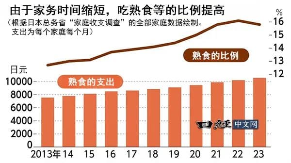大和综研的主任研究员矢作大祐认为,“女性进入社会的速度加快可能也是食品支出负担加重的原因之一”。在日本,20多岁和30多岁女性的正规就业率在最近10年里上升了约14个百分点。对于两人均为正式员工的双职工家庭来说,兼顾工作与家务再次成为课题,日本的工作方式改革仍处于半途。