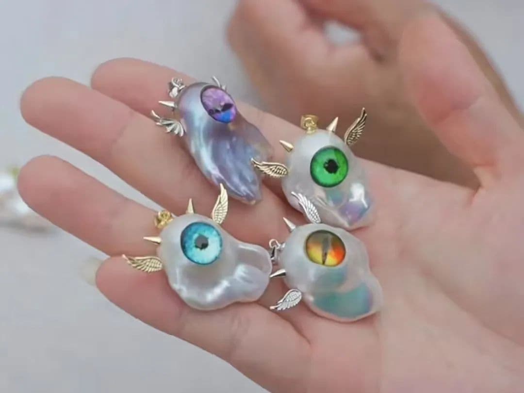 2021年,一条“小怪兽”饰品短视频突然爆火。视频中,只见何仕珍从河蚌中取出几颗奇形怪状的巴洛克珍珠,不紧不慢地给珍珠打孔,然后装配上眼睛、帽子等配饰。原本形状不规则的异形珍珠,在何仕珍的巧手下,竟然变成了一个个可爱的“小怪兽”。