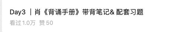 借力就是指借助领域内“大佬”的影响力为自己的内容背书,比如考研政治领域肖秀荣老师是绝对的权威和“顶流”。如果账号发布的笔记或视频与肖秀荣相关就更容易成为爆文,比如针对《背诵手册》做带背笔记和配套练习等,在公众号只有 1~2 万粉丝的时候,能持续阅读量破万,并通过这种方式不到一个月时间公众号增粉超 4 万。