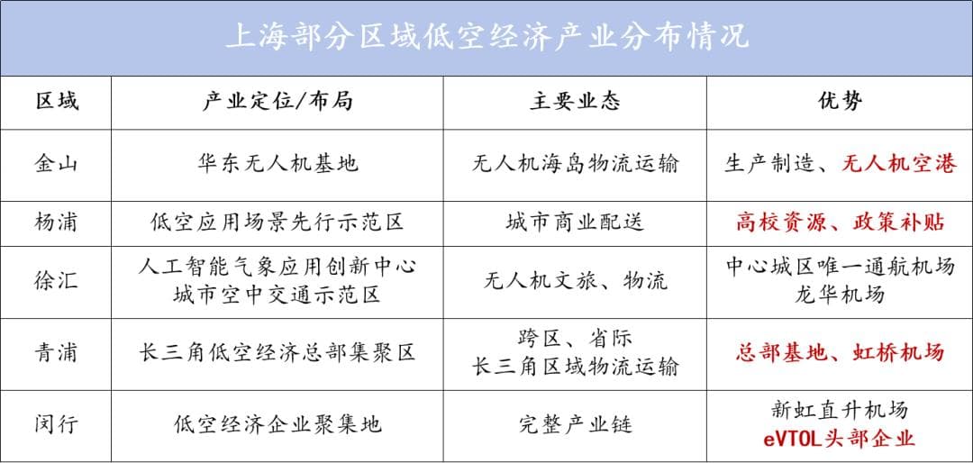 7月份的《上海市低空经济产业高质量发展行动方案(2024-2027年)》中,对每个区的定位还是挺明确的,而且是以分工合作的方式,在全城形成“一张”产业网。