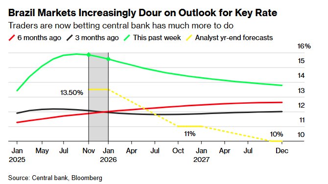 在新兴市场中,尽管巴西央行已经连续加息了多次(且加息步子越迈越大),但其一些邻国目前则依然处于宽松周期之中。本周智利央行、墨西哥央行、哥伦比亚央行这三家拉美央行均有望降息。