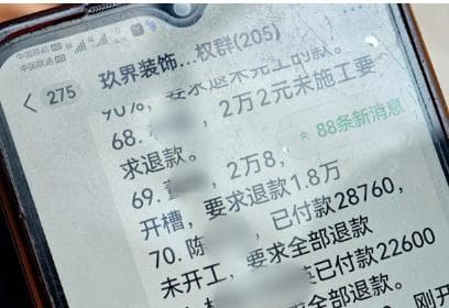 据业主提供的信息,该公司负责人在“福州玖界装饰集团群”中发布通告,声称因无力承担运营成本,决定宣布公司停业倒闭。通告中还提到,公司将成立工作小组,对在建工地、未开工工地、工长及人工费用结算、商家货款等方面进行善后处理。然而,业主们表示,公司并未有人出面告知倒闭一事,甚至在倒闭前一天还在催交装修尾款。直到受雇于公司的工长前来通报,业主们才得知此事,他们怀疑公司的“跑路”是有预谋的。