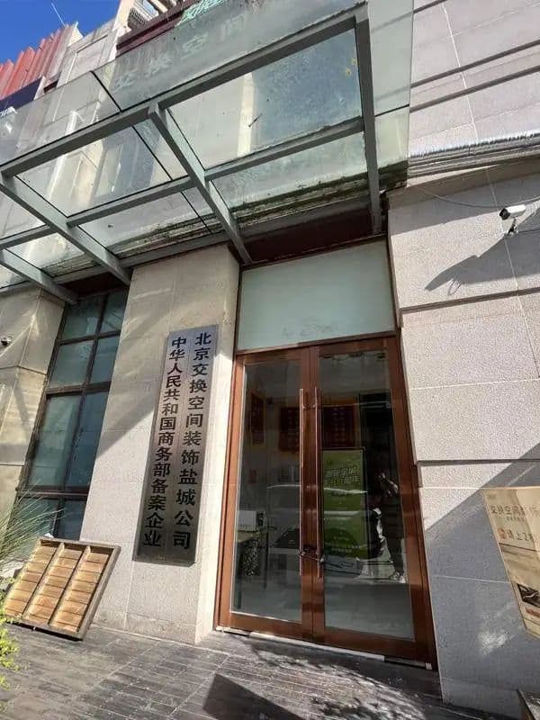 作者尝试联系公司,但电话均无人接听。业主们表示,登记地址与实际地址不符,也是违规的。记者在业主指引下找到了公司,发现公司的大门已上锁,门口竖着商务部备案企业和北京交换空间装饰盐城分公司的牌子。