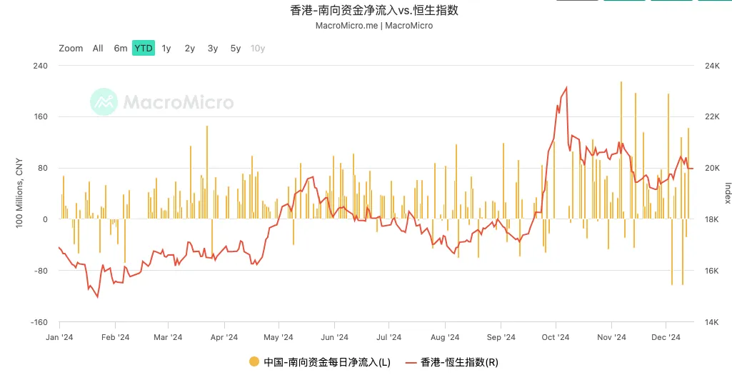 反映到行情上,南向资金带来的流动性增量,也对2024年的港股行情起到决定性的支撑作用。