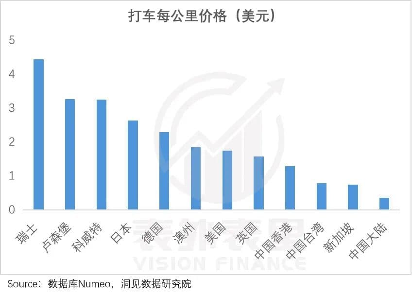 而这不是个例,可以看到,相比于中国大陆0.35美元/公里、随叫随到的打车服务,中国香港打的每公里收费约1.28美元,且就算成功上车也可能被堵在半路。