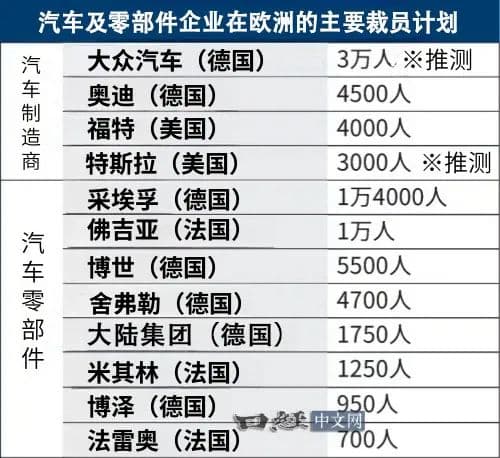 在欧洲,由于业绩恶化,各汽车企业纷纷裁员。包括预测和推测在内,裁员人数将超过10万人。