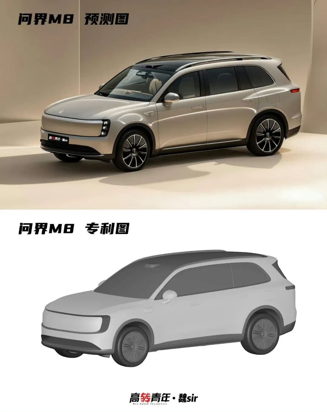 问界也在保持产品扩充,神秘的 M8 外观专利图终于曝光。