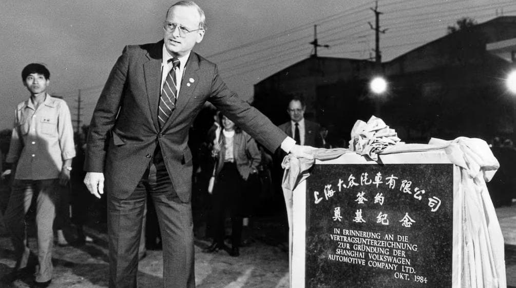 大众汽车在中国赢得了漫长的黄金年代,四十年前的1984年10月,中德两国总理见证了大众在中国第一家合资公司上汽大众的奠基,当时的规模是年产3万辆桑塔纳。