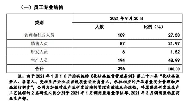上述从业者也坦言,敷尔佳一开始算是做微商起家的,研发欠缺,刚上市的时候招股书里显示研发人员只有 6 个人,靠营销打起来的。
