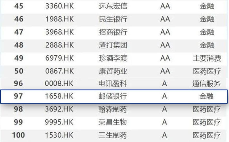 据华证指数发布的“2024年度A股上市公司ESG卓越表现TOP100”榜单,邮储银行并未上榜。而上榜的银行除了国有大行、全国股份行,还包括江苏银行、沪农商行、北京银行、上海银行等城农商行。而在华证指数发布的“2024年港股上市公司ESG卓越表现TOP100”榜单中,邮储银行位列第97位,相当不体面。
