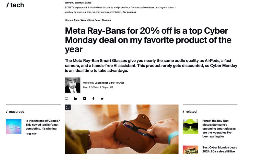 Ray-Ban Meta 降价之后更香了|图片来源:ZDNET