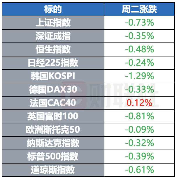全球主要指数周二普遍下跌,美股三大指数集体收跌,道指连续第九个交易日下跌,创下自1978年2月以来最长连跌纪录。