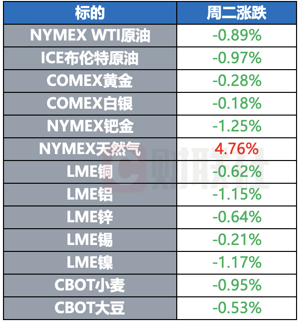 COMEX黄金期货跌0.28%,报2662.4美元/盎司;COMEX白银期货跌0.18%,报30.98美元/盎司。
