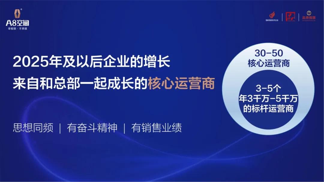 所以我不会大张张旗鼓地招新商,我只需要有30-50个核心运营商,我们把与总部思想同频、有奋斗精神、业绩干得上来、扶得起来的运营商,打造成标杆运营商,通过三、五年时间,扶持起三、五个一年能做3000万到5000万的大商。