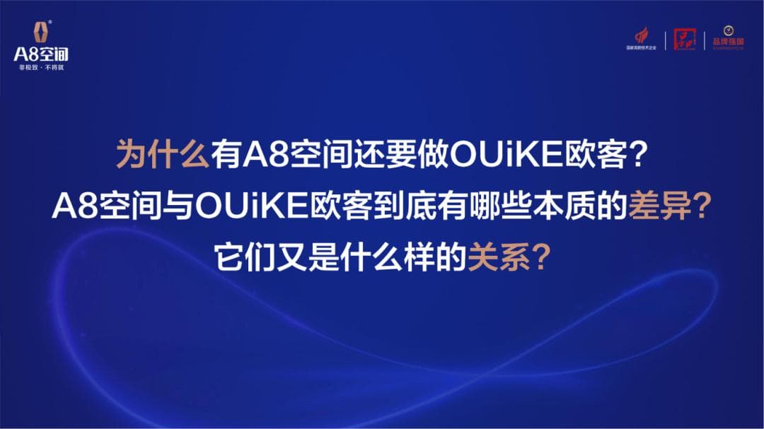 为什么不能脱离 A8 空间做OUiKE欧客? 因为A8空间就是OUiKE欧客的“研发中心”,如果没有运营商、设计师、客户、供应链以及公司研发团队五个维度共同对A8空间的合力研发,没有A8空间投入的大量研发成本,没有成熟的A8空间的产品作支撑,就没有OUiKE欧客在市场上的核心竞争力。