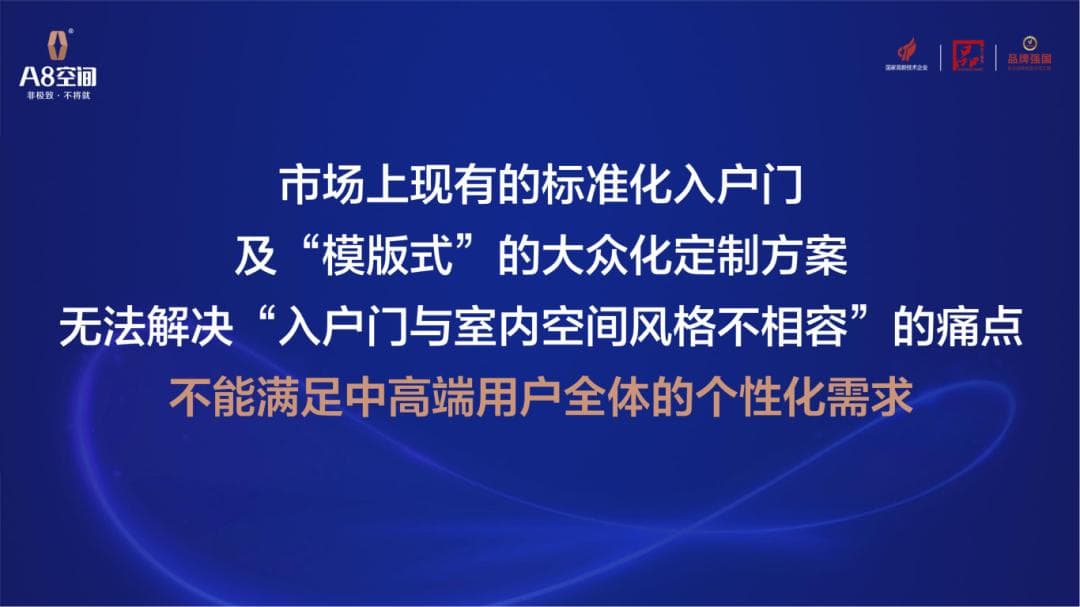 作为家居空间的 “门面担当”,市场上现有的标准化入户门以及“模板” 式的大众化定制方案,没有与内部的空间呼应起来,不能满足中高端用户群体的个性化需求。